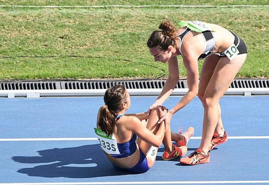 Ao ver a cena, a neozelandesa voltou para ajudar a adversária a se levantar. Hamblin completou a bateria na 15ª posição, com o tempo de 16min43s61. Incentivada a não desistir, D'Agostino cruzou a linha de chegada na 16º posição, com tempo de 17min10s02o, e foi abraçada por Hamblin.
